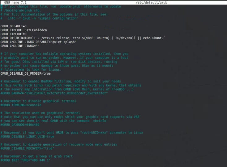 sudo nano /etc/default/grub